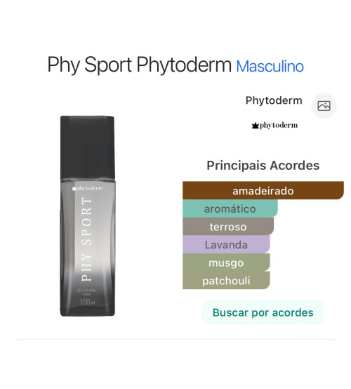 O Phy Sport da Phytoderm é um perfume masculino (deo colônia) com cheiro fresco, esportivo e amadeirado, criado para homens que gostam de fragrâncias leves e energéticas para o dia a dia. Ele foi lançado em 2018.