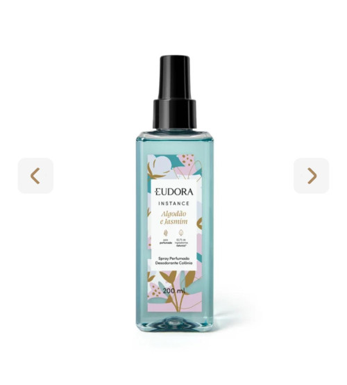 O Body Splash Instance Jasmim e Algodão da Eudora é um spray corporal perfumado leve (desodorante colônia), feito para deixar a pele cheirosa, fresca e com sensação de limpeza no dia a dia.
