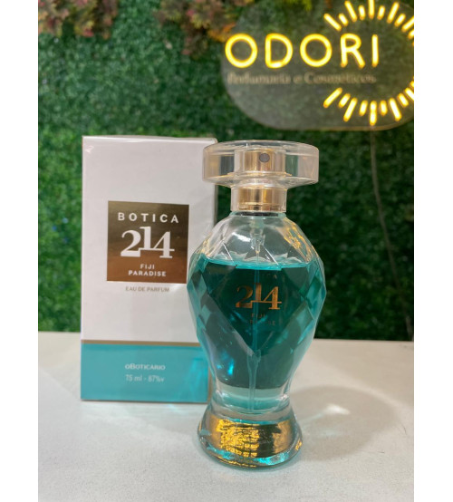 O Botica 214 Fiji Paradise Eau de Parfum é um perfume da marca O Boticário inspirado nas ilhas Fiji, no Oceano Pacífico. A fragrância tenta transmitir a sensação de praia tropical, natureza e águas cristalinas, como se fosse uma viagem para um lugar paradisíaco.