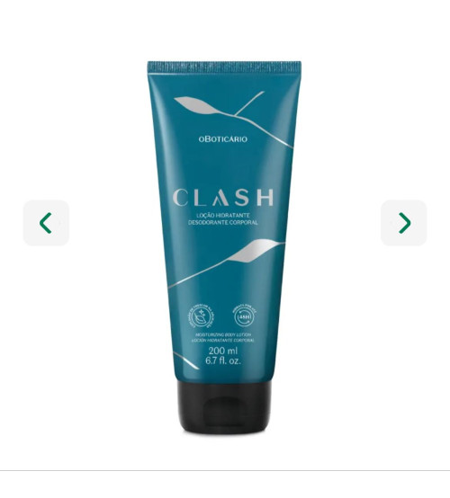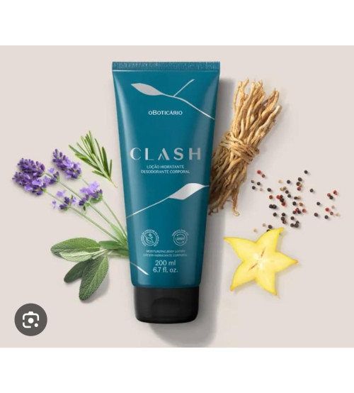 O hidratante corporal Clash do O Boticário é uma loção hidratante perfumada masculina feita para hidratar a pele e deixar o corpo com a mesma fragrância da linha Clash.