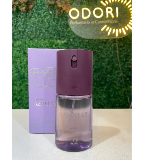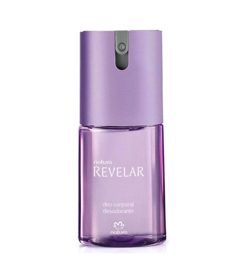 O desodorante corporal Revelar da Natura é um spray perfumado para o corpo, feito para uso diário — bem parecido com outros desodorantes corporais da marca.