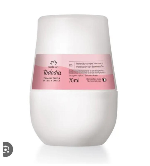 O desodorante roll-on Tâmara e Canela da Natura (linha Tododia) é um desodorante antitranspirante para as axilas, com aplicação em formato de bolinha (roll-on).