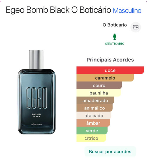 O Egeo Bomb Black é um perfume masculino (desodorante colônia) da linha Egeo do Boticário, conhecido por ser muito doce, intenso e “explosivo” no cheiro.