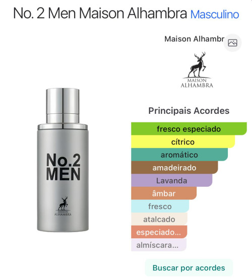 O No.2 Men da Maison Alhambra é um perfume masculino relativamente recente (lançado em 2022) que ficou conhecido por ser elegante, versátil e com ótimo custo-benefício — principalmente por lembrar fragrâncias mais caras.